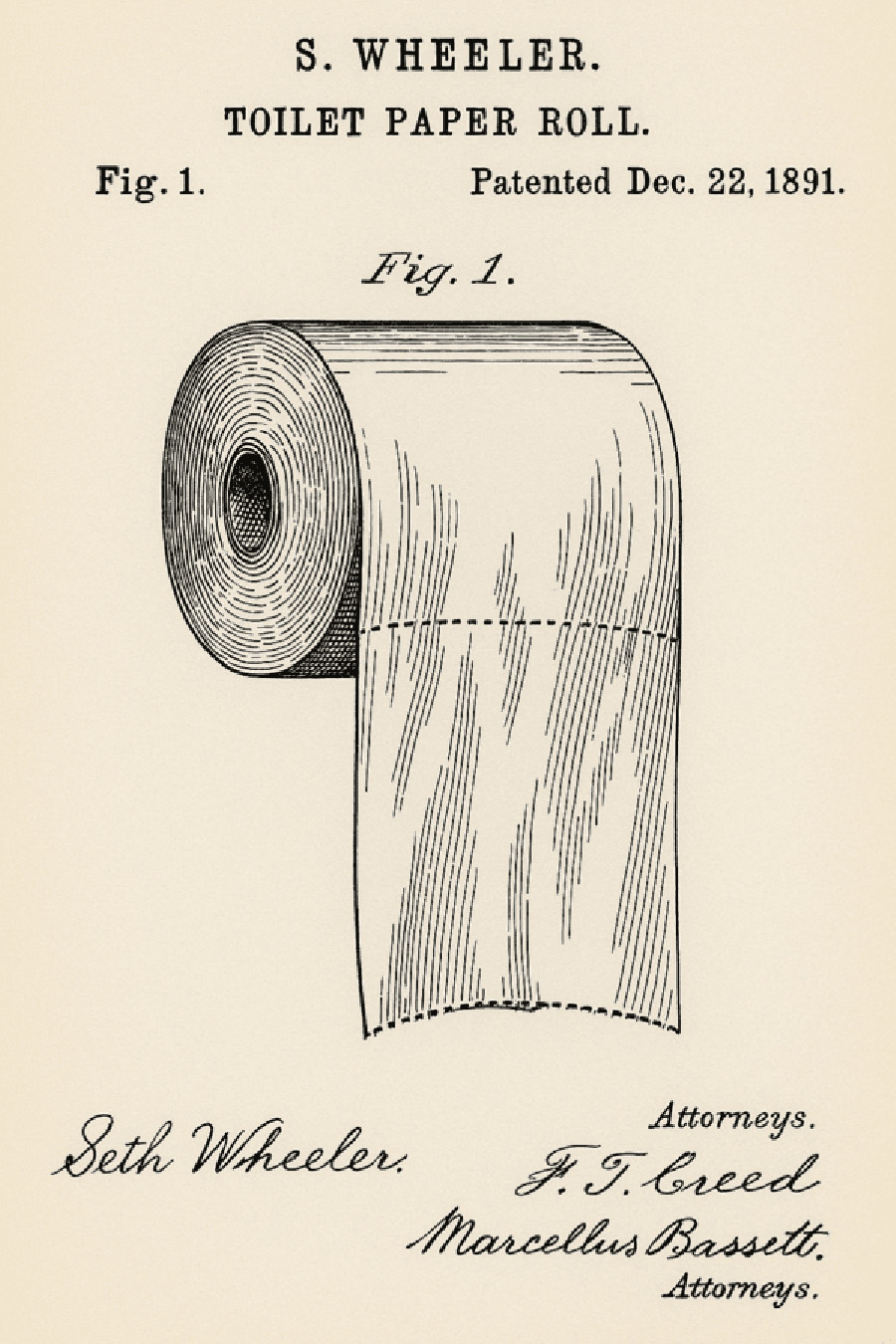 정답은 바깥쪽을 향하는 방향입니다. 휴지가 덮개 쪽을 지나며 바깥쪽으로 빠져나와야 세균 오염으로부터 안전합니다. 실제로 한 칸씩 뜯어서 쓰는 두루마리 휴지가 처음 발명됐던 1891년에, 발명자 세스 휠러의 도면에도 휴지 끝이 바깥으로 넘어오게 설계돼 있습니다.