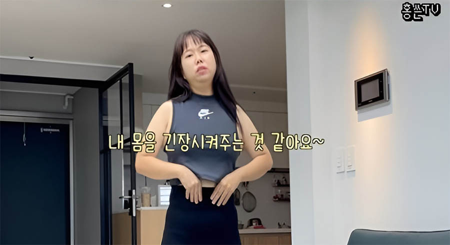 홍현희는 집에 있을 때도 레깅스나 몸에 딱 맞는 옷을 입으며 몸 상태를 계속 체크했다고 합니다.