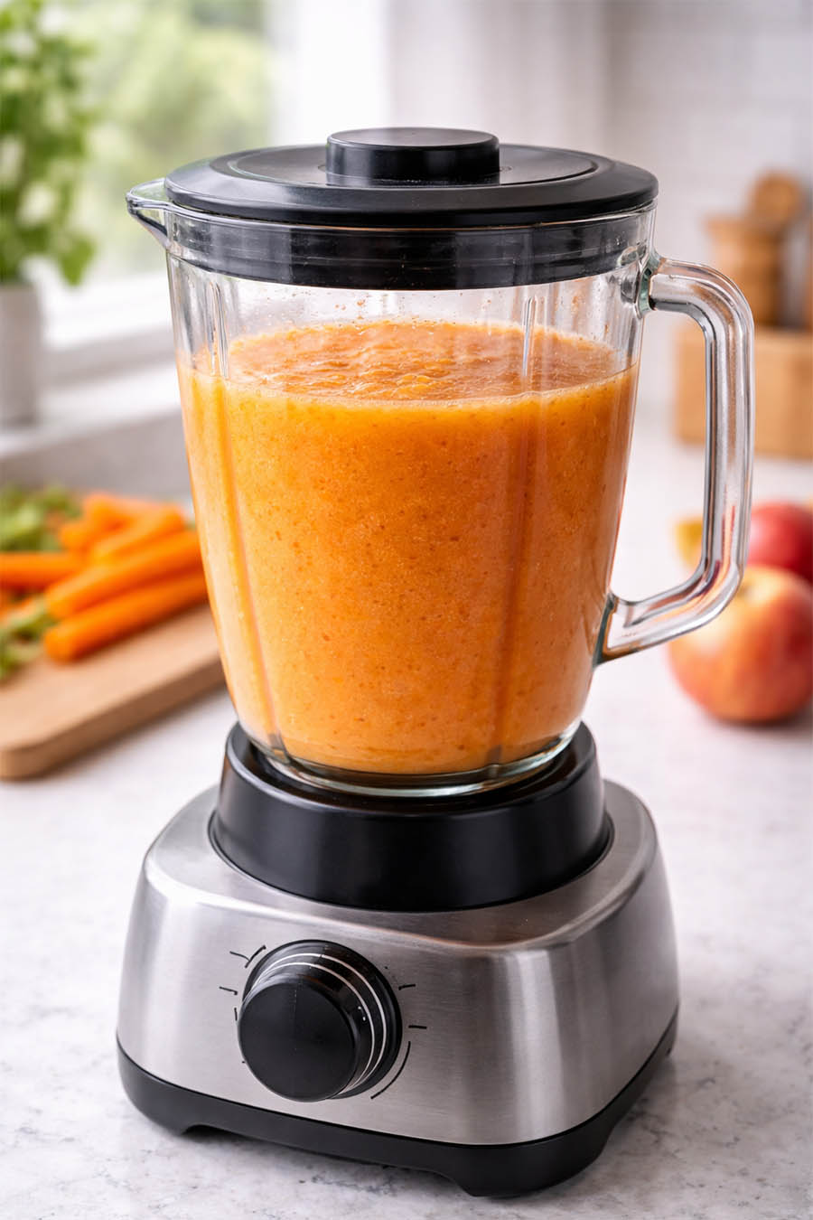 당근을 갈면 세포벽이 깨지면서 영양소가 밖으로 쉽게 나오게 됩니다. 이 과정에서 베타카로틴 흡수율이 최대 5배 가까이 증가할 수 있습니다. 또한 사과와 함께 갈아서 주스로 마시면, 식이섬유가 풍부해 장 건강을 돕고, 규칙적인 배변에 도움을 줍니다.