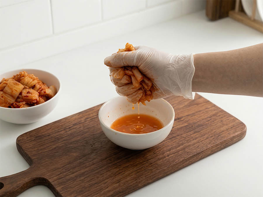 너무 꽉 짜면 김치 고유의 맛이 사라지니, 촉촉함이 살짝 남아 있을 정도로만 짜주는 것이 포인트입니다.